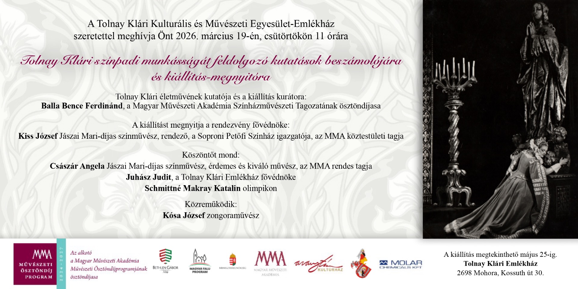 26. évadát nyitja a Tolnay Klári Emlékház Mohorán!